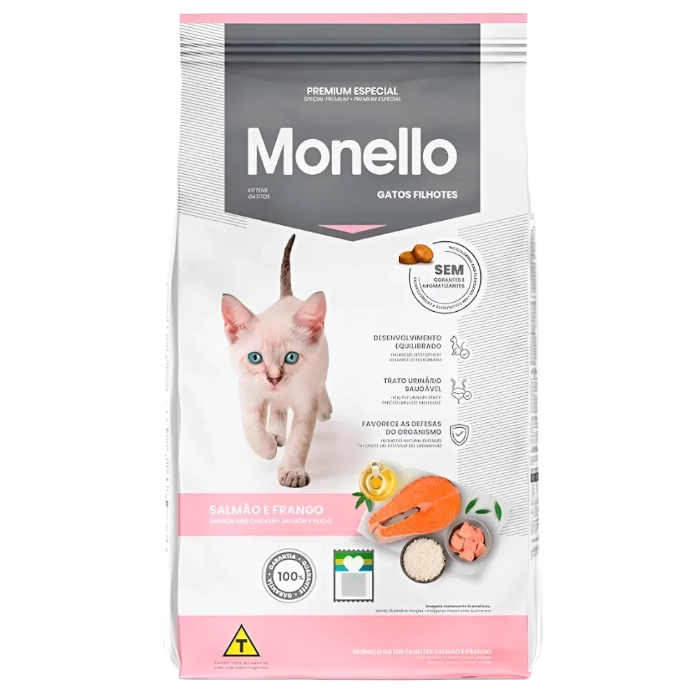 Alimento seco Monello Gatos Filhotes 1 kg, diseñado para apoyar el crecimiento saludable de gatitos. Con proteínas de alta calidad, prebióticos MOS, taurina y aceite de salmón para fortalecer defensas, mejorar la digestión y favorecer el desarrollo cognitivo. Sabor irresistible a salmón.