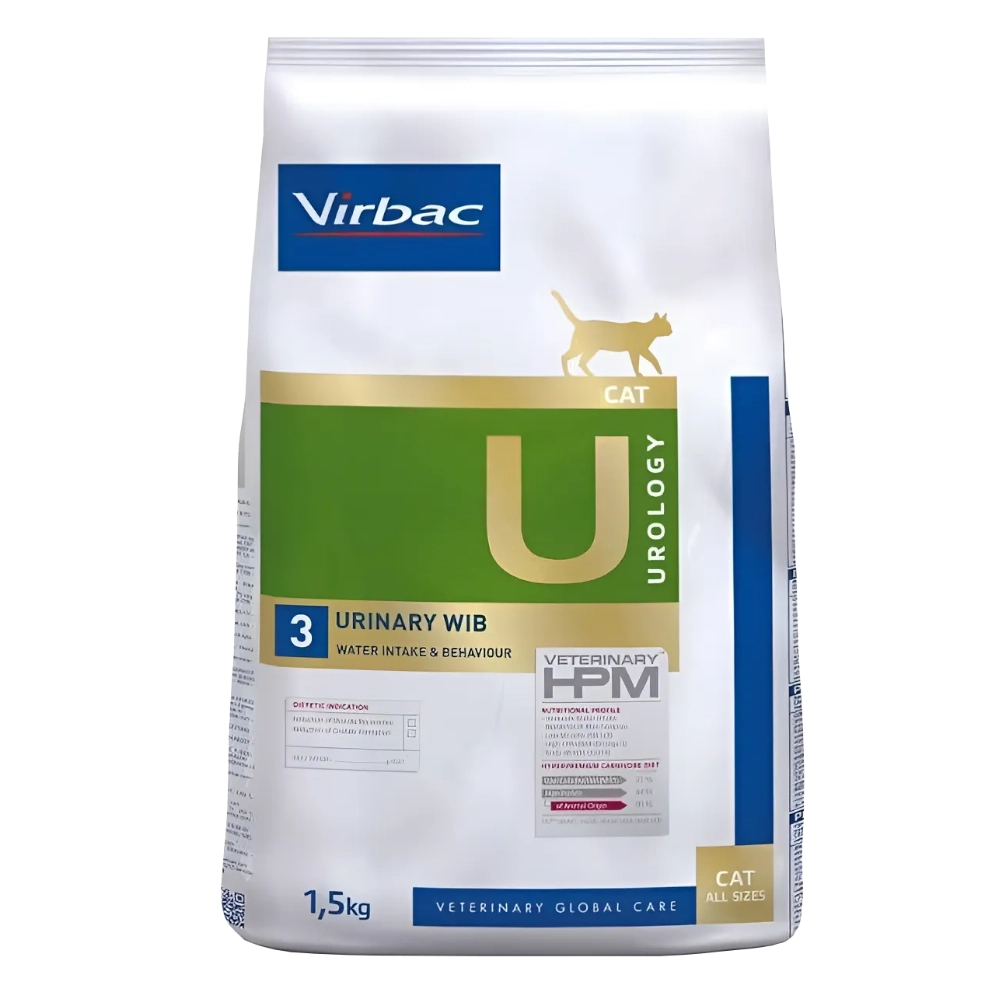 Alimento seco Virbac Veterinary HPM Urinary WIB Cat 1.5 kg, formulado para apoyar la salud urinaria, proteger la salud oral y ofrecer nutrición de alta calidad gracias a su proteína hidrolizada. Ideal para gatos adultos que requieren una dieta equilibrada para su bienestar general.